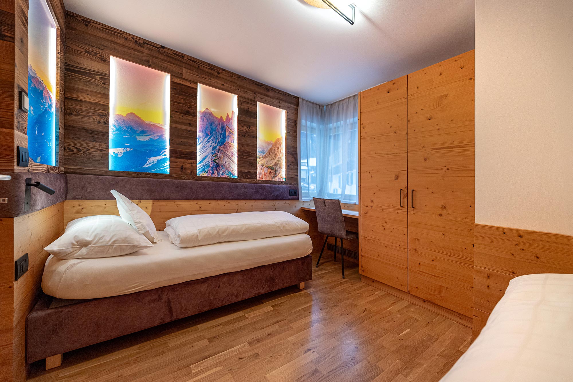 mit zwei Schlafzimmern mit Safe und Sat/TV, eines mit Ehebetten und eines mit getrennten Betten,