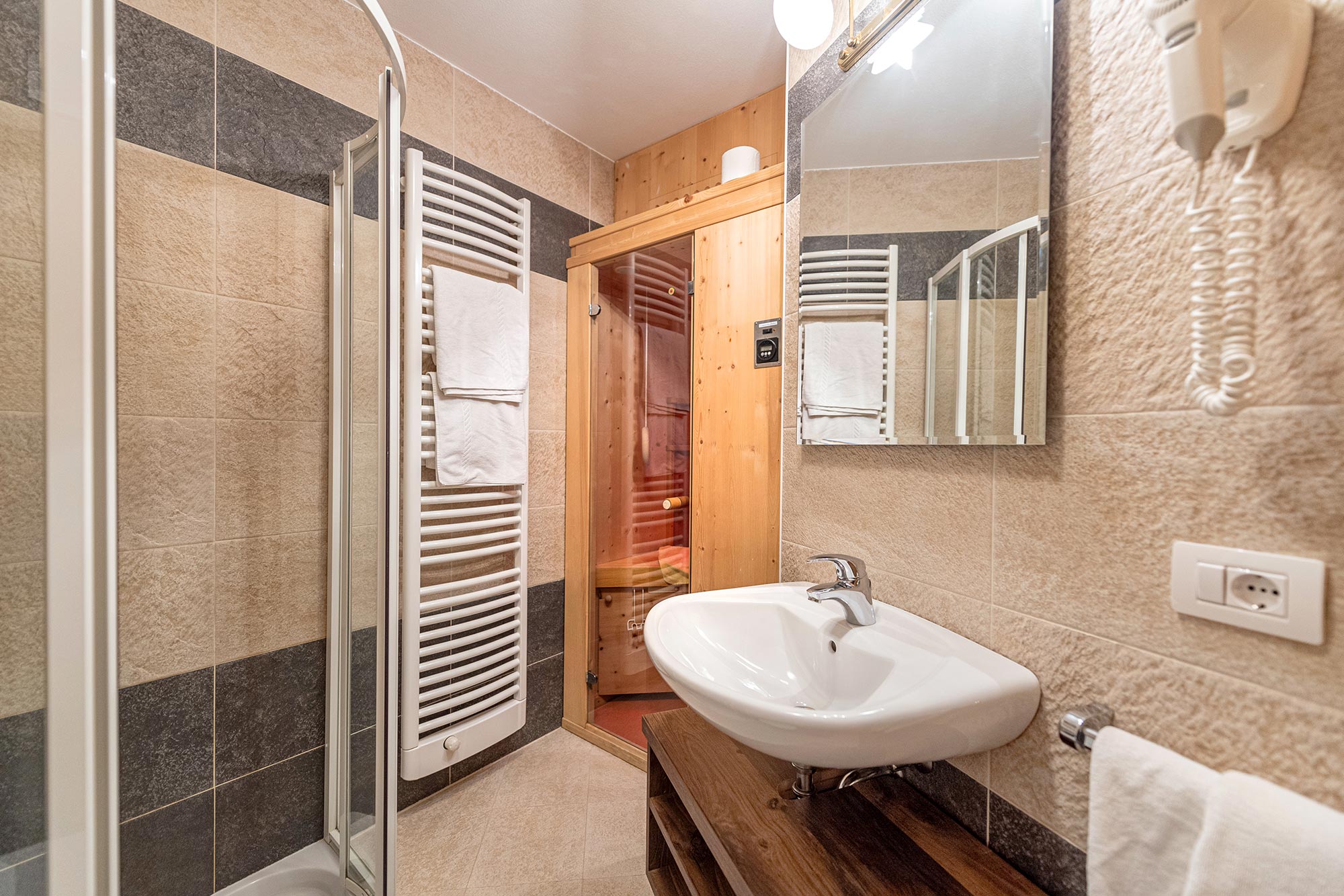 zwei Bäder und eine eigene Sauna.